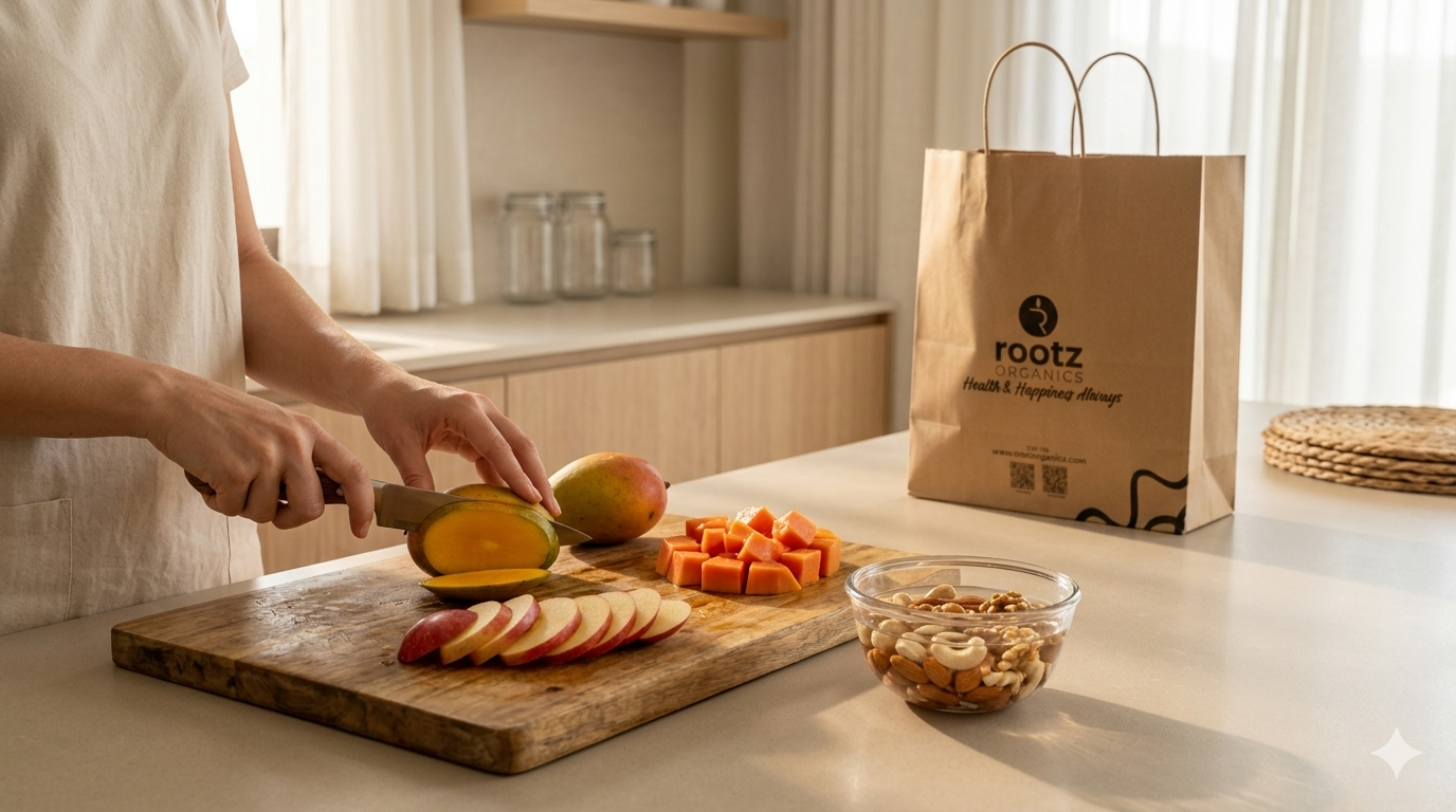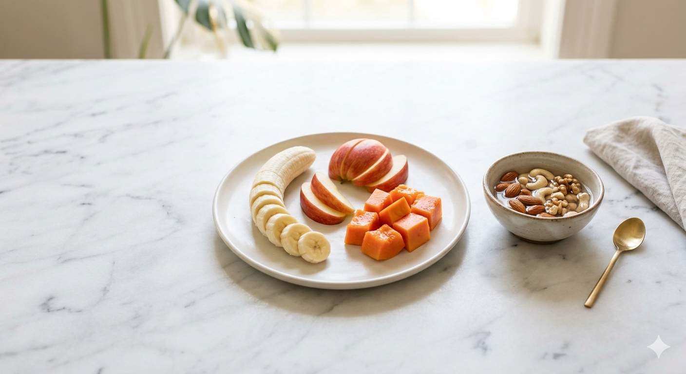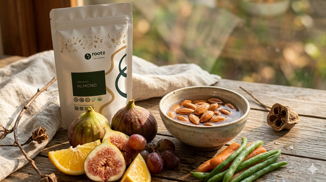 Organic fruits, vegetables, soaked nuts, and light meals are ideal.