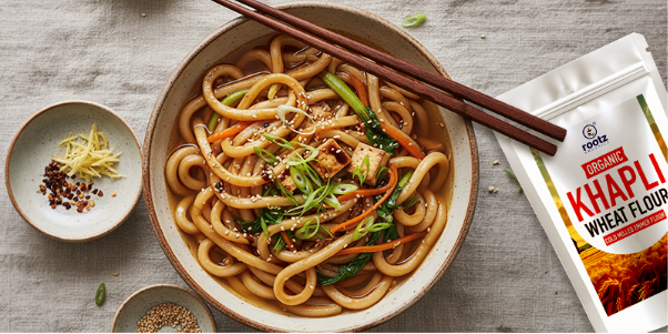 Udon noodles are known for their comfort and simplicity. Using a lowgluten flour makes them gentler on digestion while retaining their chew.