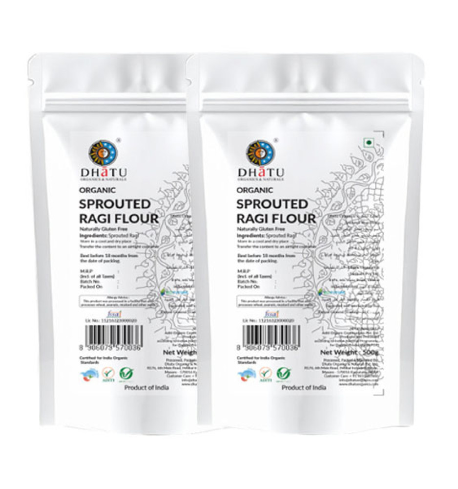 Organic Sprouted Ragi Flour is made from premium organic finger millet (ragi) grains that are carefully sprouted and stone-ground to enhance nutrient availability. Sprouting increases digestibility and the content of calcium, protein, and essential vitamins.
